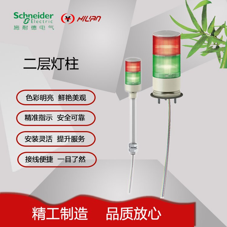 施耐德2层信号灯柱报警器红\/绿LED常亮无蜂鸣器基座安装